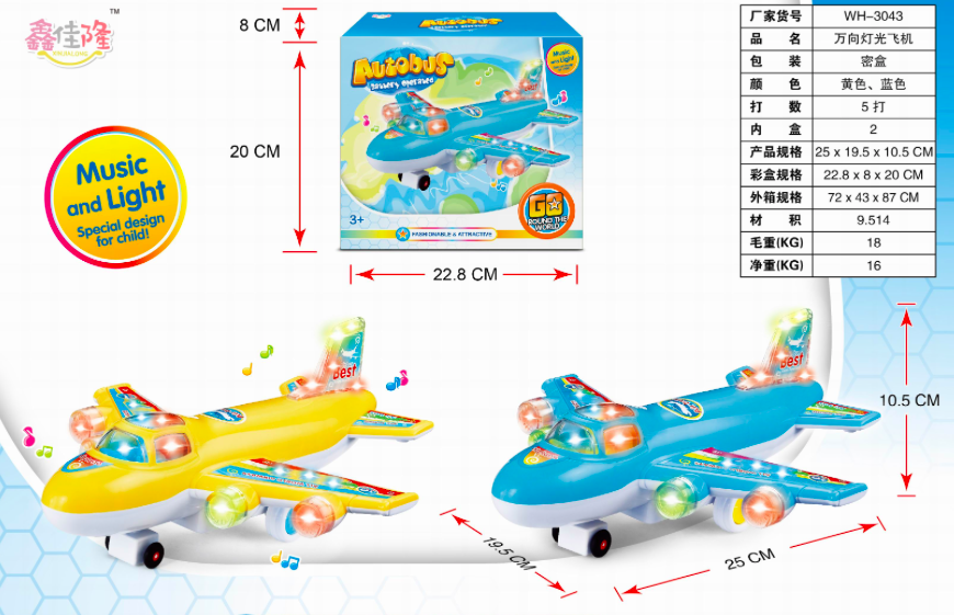 Самолет арт. WH-3044 На батарейках, звук, свет в кор. 19,4*10*19